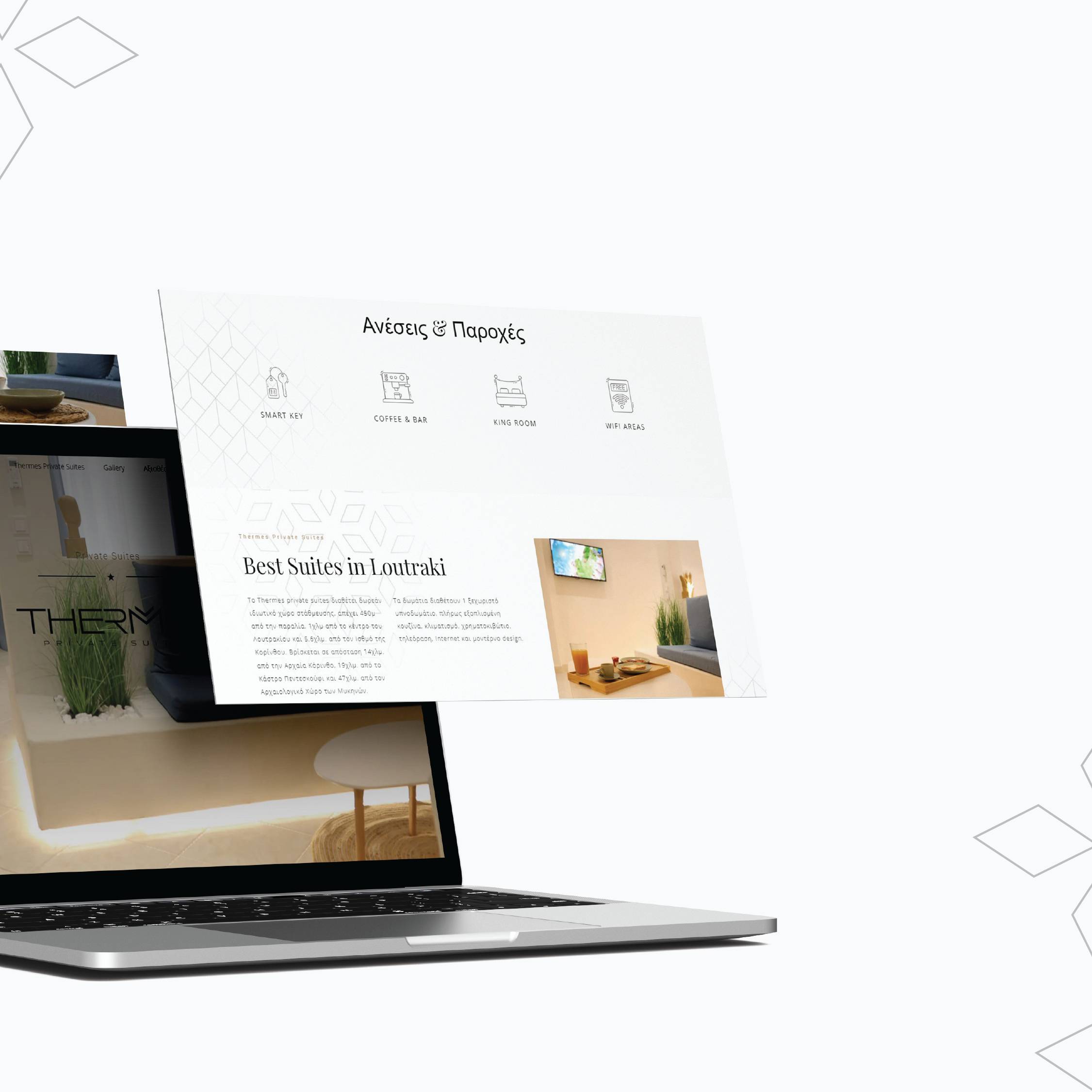 Σχεδιάσαμε έναν κομψό και φιλικό προς τον χρήστη ιστότοπο που αντικατοπτρίζει την αισθητική του Thermes Suites και την ποιότητα των υπηρεσιών φιλοξενίας του.